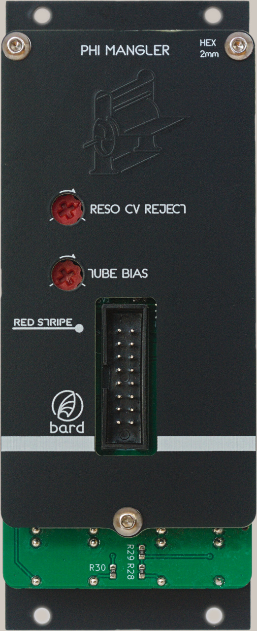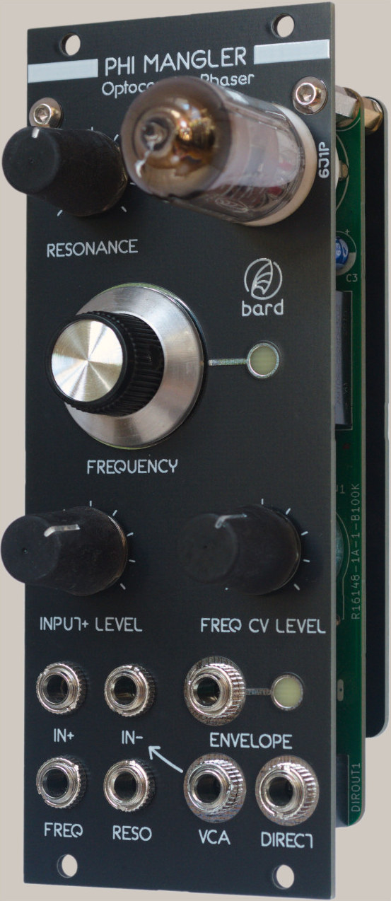 Phi Mangler is a four-stage Vactrol-based phaser that utilizes pentode VCA for controlling feedback amount. Providing wide frequency response and non-linearity of the vacuum tube, this module is capable of creating very distinctive phasing sounds.